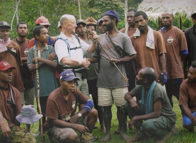An old rifle had been found by a local landowner in his garden, at the village Aguro on the Brown River. It is a swampy area. The rifle, a 303 relic from the Kokoda campaign, was in danger of being sold and taken away. Our group were able to purchase the rifle for Harold on behalf of the Port Arlington - St Leonards RSL. We felt it should remain where it had been found, as a tribute to its unknown owner and those who fought on the Track. The photograph shows the ceremony of Harold Young (81 years 11 months), handing over the rifle to the local head man, Sodie on behalf of the Port Arlington - St Leonards RSL in respect of those persons from Papua New Guinea and Australia who in 1942 fought along the Kokoda Track.
